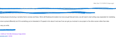 “Yes, I’d love to see the one-paragraph version you mentioned.”